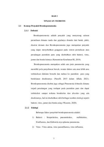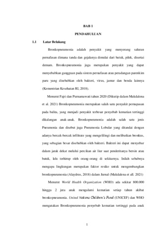 Latar Belakang: Bronkopneumonia merupakan penyakit yang dapat