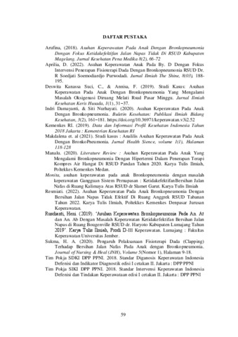 Kata Kunci : Asuhan Keperawatan Anak, Bronkopneumonia, Bersihan Jalan
