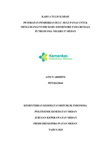 Lubis, Ainun Ardhini (2025) Penerapan Pemberian Buli –Buli Panas Untuk Mengurangi Nyeri Haid / Dismenore Pada Remaja Putri Di Sma Negeri 17 Medan. Diploma thesis, Poltekkes Kemnkes Medan.