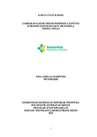Nina Amelia, Syahputri (2025) GAMBARAN KADAR UREUM PENDERITA JANTUNG KORONER DI RUMAH SAKIT SRI PAMELA TEBING TINGGI. Diploma thesis, Poltekkes Kemenkes Medan.