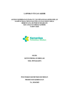 Siregar, Kenni Friska H (2025) Asuhan Kebidanan pada ny.M G3P2A0 Masa Kehamilan Sampai Masa Nifas dan Pelayanan Keluarga Berencana di PMB Sumiariani Kecamatan Medan Johor Tahun 2025. Diploma thesis, Poltekkes Kemenkes Medan.