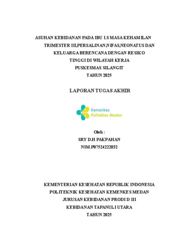 PAKPAHAN, SRY D.H (2025) ASUHAN KEBIDANAN PADA IBU I.S MASA KEHAMILAN TRIMESTER III,PERSALINAN,NIFAS,NEONATUS DAN KELUARGA BERENCANA DENGAN RESIKO TINGGI DI WILAYAH KERJA PUSKESMAS SILANGIT TAHUN 2025. ASUHAN KEBIDANAN PADA IBU I.S MASA KEHAMILAN TRIMESTER III,PERSALINAN,NIFAS,NEONATUS DAN KELUARGA BERENCANA DENGAN RESIKO TINGGI DI WILAYAH KERJA PUSKESMAS SILANGIT TAHUN 2025.