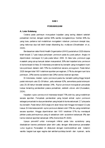 Latar Belakang: Luka perineum post partum merupakan komplikasi persalinan