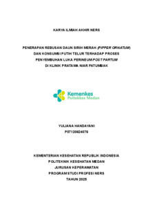 Handayani, Yuliana (2025) Penerapan Rebusan Daun Sirih Merah (Pipper Ornatum) Dan Konsumsi Putih Telur Terhadap Proses Penyembuhan Luka Perineum Post Partum Di Klinik Pratama Niar Patumbak. Diploma thesis, Poltekkes Kemnkes Medan.