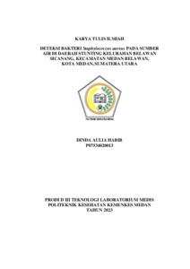 Dinda, Aulia Habib (2023) DETEKSI BAKTERI Staphylococcus aureus PADA SUMBER AIR DI DAERAH STUNTING KELURAHAN BELAWAN SICANANG, KECAMATAN MEDAN BELAWAN, KOTA MEDAN, SUMATERA UTARA. Diploma thesis, Poltekkes Kemenkes Medan.