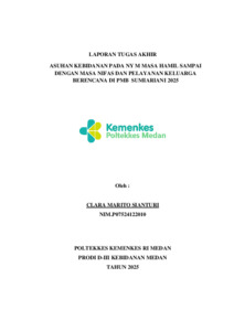 Sianturi, Clara Marito (2025) Asuhan Kebidanan pada Ny M Masa Hamil Sampai Dengan Masa Nifas dan Pelayanan Keluarga Berencana di PMB Sumiariani 2025. Diploma thesis, Poltekkes Kemenkes Medan.