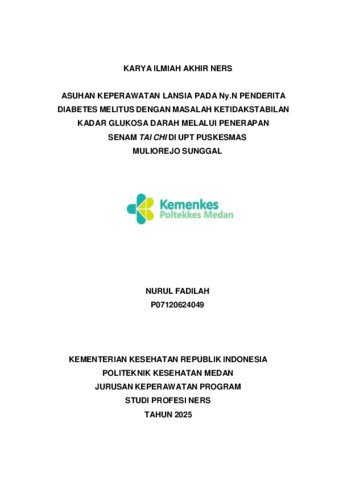 Fadilah, Nurul (2025) Asuhan Keperawatan Lansia Pada Ny.N Penderita Diabetes Melitus Dengan Masalah Ketidakstabilan Kadar Glukosa Darah Melalui Penerapan Senam Tai Chi Di Upt Puskesmas Muliorejo Sunggal. Diploma thesis, Poltekkes Kemnkes Medan.