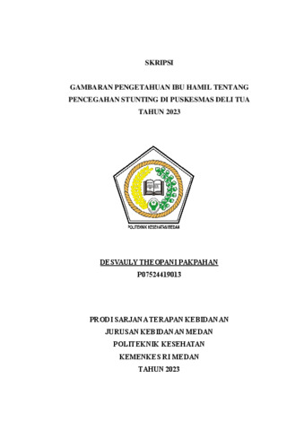 Pakpahan, Desvauly Theopani (2023) Gambaran Pengetahuan Ibu Hamil Tentang Pencegahan Stunting di Puskesmas Deli Tua Tahun 2023. Diploma thesis, Poltekkes Kemenkes Medan.