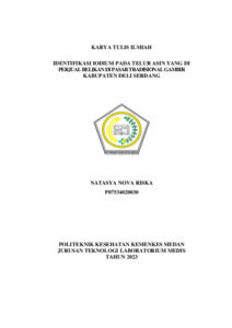 Natasya, Nova Riska (2023) IDENTIFIKASI IODIUM PADA TELUR ASIN YANG DI PERJUAL BELIKAN DI PASAR TRADISIONAL GAMBIR KABUPATEN DELI SERDANG. Diploma thesis, Poltekkes Kemenkes Medan.