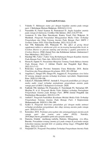 Safitri, Elsa (2023) Pengaruh Pendidikan Kesehatan Menggunakan Video Animasi Terhadap Pengetahuan Remaja Putri Tingkat Tsanawiyah Tentang Anemia di Pondok Pesantren Babussalam Kabupaten Langkat Tahun 2023. Diploma thesis, Poltekkes Kemenkes Medan.