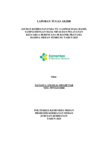 Sipahutar, Natasya Angelia (2025) Asuhan Kebidanan pada Ny. S G1P0A0 Masa Hamil Sampai Dengan Masa Nifas dan Pelayanan Keluarga Berencana di Klinik Pratama Madina Tahun 2025. Diploma thesis, Poltekkes Kemenkes Medan.