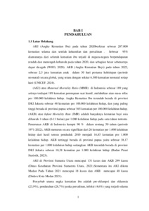 AKI (Angka Kematian Ibu) sekitar 287.000 perempuan meninggal selama dan setelah kehamilan dan persalinan pada tahun 2020. Hampir 95% dari seluruh kematian ibu terjadi di negara-negara berpendapatan rendah dan menengah kebawah pada tahun 2020, dan sebagian besar sebenarnya dapat dicegah (WHO,