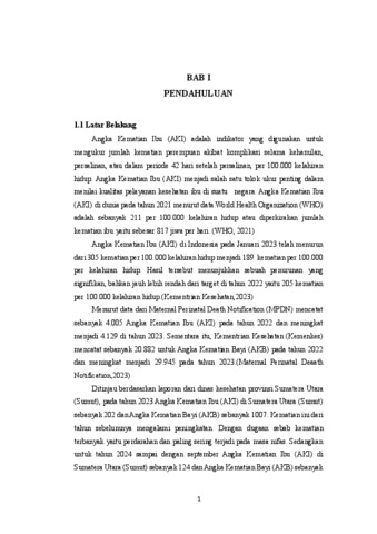 Angka Kematian Ibu (AKI) di Dunia pada Tahun 2021 menurut data World Helath Organization (WHO) adalah sebanyak 211 per 100.000 kelahiran hidup Kematian Bayi (AKB) di dalam 20 hari pertama kehidupannya 2, 3 juta meninggal pada tahun 2022. Peyenbab kematian Bayi disebabkan oleh kelahiran prematur, komplikasi kelahiran.
