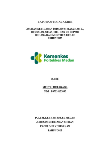 Hutagaol, Mei Tri (2025) Asuhan Kebidanan pada Ny. S Masa Hamil, Bersalin, Nifas, BBL, dan KB di PMB Juliana Dalimunthe S. Keb. Bd Tahun 2025. Diploma thesis, Poltekkes Kemenkes Medan.