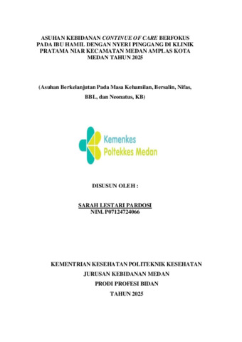 Pardosi, Sarah Lestari (2025) Asuhan Kebidanan Continuity Of Care Berfokus pada Ibu Hamil Dengan Nyeri Pinggang di Klinik Pratama Niar Kecamatan Medan Amplas Kota Medan Tahun 2025. Diploma thesis, Poltekkes Kemenkes Medan.