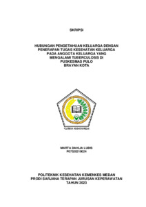 Lubis, Martha Dahlia (2023) Hubungan Pengetahuan Keluarga Dengan Penerapan Tugas Kesehatan Keluarga Pada Anggota Keluarga Yang Mengalami Tuberculosis Di Puskesmas Pulo Brayan Kota. Diploma thesis, Poltekkes Kemenkes Medan.