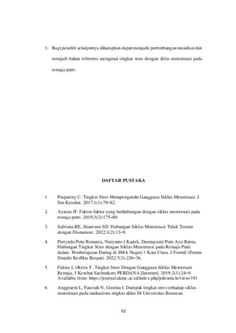 menstruasi tidak teratur, sedangkan di Provinsi Sumatera Utara wanita dengan siklus menstruasi tidak teratur 11,6%. Siklus menstruasi tidak teratur dipengaruhi oleh berbagai faktor, yaitu berat badan, diet, aktifitas fisik, gangguan endokrin, gangguan pendarahan dan stres. Penelitian ini bertujuan untuk mengetahui hubungan antara tingkat stres dengan siklus menstruausi. Desain pada penelitian ini