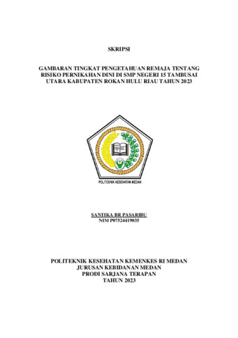 Pasaribu, Santika Br (2023) Gambaran Tingkat Pengetahuan Remaja Tentang Risiko Pernikahan Dini di SMP Negeri 15 Tambusai Utara Kabupaten Rokan Hulu Riau Tahun 2023. Diploma thesis, Poltekkes Kemenkes Medan.