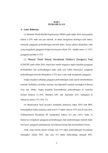 menyatakan bahwa 5-25% anak usia pra sekolah di dunia mengalami disfungsi otak minor, termasuk gangguan perkembangan motorik halus. Secara global dilaporkan anak yang mengalami gangguan berupa kecemasan sekitar 9% , mudah emosi 11-15%, gangguan perilaku 9-15%. Menurut United Nations International