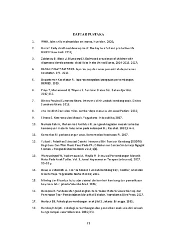 Children’s Emergency Fund (UNICEF) pada tahun 2016, dapat data masihtingginya angka kejadian gangguan pertumbuhan dan perkembangan pada anak usia balita khususnya gangguan perkembangan motorik didapatkan 27,5% atau 3 juta anak mengalami gangguan. Jenis penelitian yang digunakan adalah pre eksperimental design dengan rancangan one group pretest-posttest design. Teknik pengambilan sampel menggunakan total sampling dengan jumlah sampel adalah 30 responden. Hasil penelitian di uji Wilcoxon menggunakan SPSS, dan didapati hasil nilai p-value = 0,000 ( <0,05) karena lebih kecil maka H0 ditolak dan Ha diterima atau yang bisa diartikan ada pengaruh tindakan teknik mozaik terhadap perkembangan motoric halus pada anak usia 3-5 tahun di Paud Tunas Bangsa Desa Siponjot Kabupaten Humbang Hasundutan. Dapat disimpulkan bahwa terdapat pengaruh yang bermakna teknik mozaik terhadap perkembangan motorik halus anak pada usia 3-5 tahun di Paud