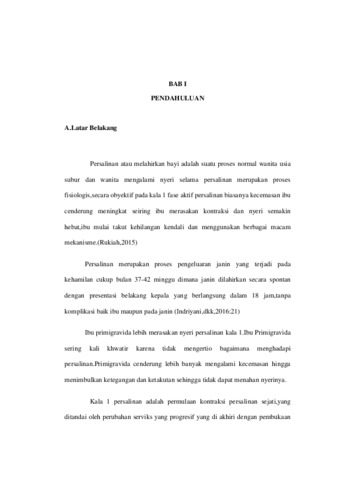 Persalinan atau melahirkan bayi adalah suatu proses normal wanita usia subur dan wanita mengalami nyeri selama persalinan merupakan proses fisiologis,secara obyektif pada kala 1 fase aktif persalinan biasanya kecemasan ibu cenderung meningkat seiring ibu merasakan kontraksi dan nyeri semakin hebat,ibu mulai takut kehilangan kendali dan menggunakan berbagai macam
