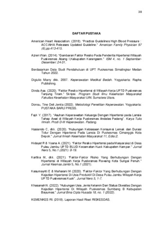 Hasil : Faktor resiko terjadinya hipertensi pada penderita hipertensi