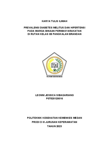SIBAGARIANG, LEONNI JESSICA (2023) PREVALENSI DIABETES MELITUS DAN HIPERTENSI PADA WARGA BINAAN PERMASYARAKATAN DI RUTAN KELAS IIB PANGKALAN BRANDAN. Diploma thesis, Poltekkes Kemnkes Medan.