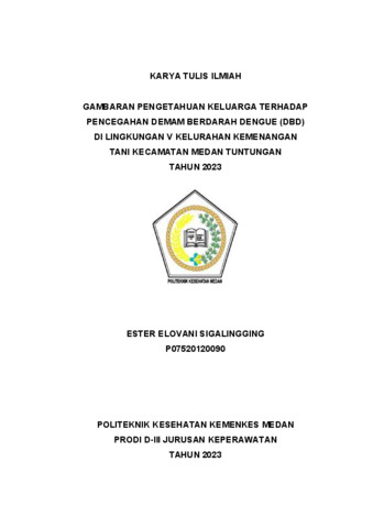SIGALINGGING, ESTER ELOVANI (2023) GAMBARAN PENGETAHUAN KELUARGA TERHADAP PENCEGAHAN DEMAM BERDARAH DENGUE (DBD) DI LINGKUNGAN V KELURAHAN KEMENANGAN TANI KECAMATAN MEDAN TUNTUNGAN TAHUN 2023. Diploma thesis, Poltekkes Kemnkes Medan.