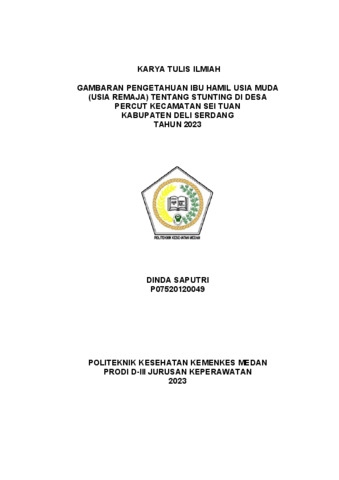 SAPUTRi, DINDA (2023) GAMBARAN PENGETAHUAN IBU HAMIL USIA MUDA (USIA REMAJA) TENTANG STUNTING DI DESA PERCUT KECAMATAN SEI TUAN KABUPATEN DELI SERDANG TAHUN 2023. Diploma thesis, Poltekkes Kemnkes Medan.