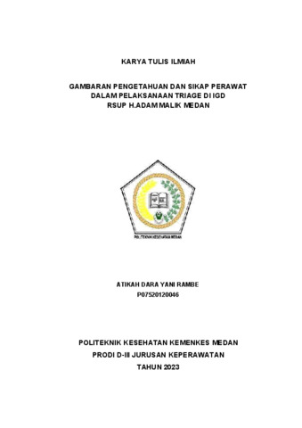 RAMBE, ATIKAH DARA YANI (2023) GAMBARAN PENGETAHUAN DAN SIKAP PERAWAT DALAM PELAKSANAAN TRIAGE DI IGD RSUP H.ADAM MALIK MEDAN. Diploma thesis, Poltekkes Kemnkes Medan.