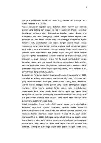 Latar Belakang: Triage adalah tindakan yang dilakukan dalam memilih dan memilah