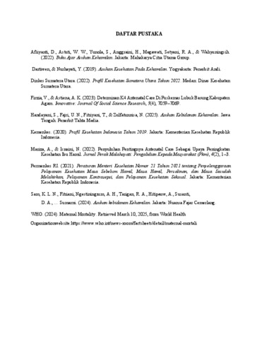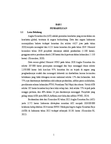 Menurut WHO(2024) AKI merupakan jumlah kematian perempuan yang dapat terjadi karena kehamilan, persalinan,dan pasca persalinan yang berfungsi sebagai petunjuk kesehatan perempuan. Sementara itu, Angka Kematian Bayi atau kematian anak dibawah satu Tahun juga merupakan data penting. WHO Tahun 2020 melaporkan bahwa 287.000 perempuan untuk AKI dan 2.350.000 bayi untuk AKB.