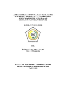 Simatupang, Enjel Katrin (2022) Asuhan Kebidanan pada Ny. L Masa Hamil Sampai Dengan Masa Nifas dan Pelayanan Keluarga Berencana di Klinik Linda Silalahi Kecamatan Pancurbatu Tahun 2022. Diploma thesis, Poltekkes Kemenkes Medan.