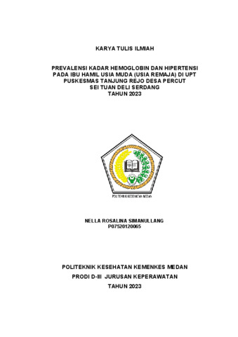SIMANULLANG, NELLA ROSALINA (2023) PREVALENSI KADAR HEMOGLOBIN DAN HIPERTENSI PADA IBU HAMIL USIA MUDA (USIA REMAJA) DI UPT PUSKESMAS TANJUNG REJO DESA PERCUT SEI TUAN DELI SERDANG TAHUN 2023. Diploma thesis, Poltekkes Kemnkes Medan.