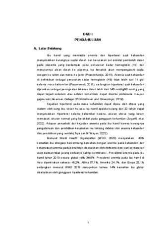 Latar Belakang : Ibu hamil yang menderita anemia saat kehamilan