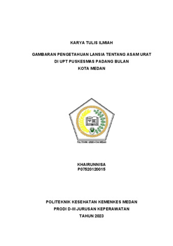 KHAIRUNNISA, KHAIRUNNISA (2023) GAMBARAN PENGETAHUAN LANSIA TENTANG ASAM URAT DI UPT PUSKESMAS PADANG BULAN KOTA MEDAN. Diploma thesis, Poltekkes Kemnkes Medan.