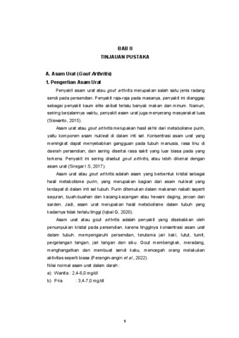 Latar Belakang: Asam urat adalah penyakit yang dapat ditandai dengan