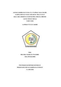 Pasaribu, Helfria Mariana (2025) Asuhan Kebidanan pada Ny. G1P0A0 Masa Hamil Sampai Dengan Masa Nifas dan Pelayanan Keluarga Berencana di Klinik Afrianan Bromo Ujung Medan Denai. Diploma thesis, Poltekkes Kemenkes Medan.