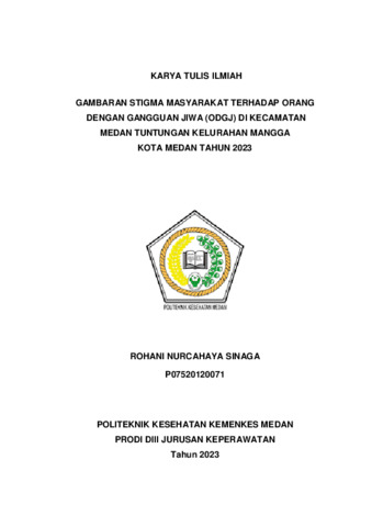 SINAGA, ROHANI NURCAHAYA (2023) GAMBARAN STIGMA MASYARAKAT TERHADAP ORANG DENGAN GANGGUAN JIWA (ODGJ) DI KECAMATAN MEDAN TUNTUNGAN KELURAHAN MANGGA KOTA MEDAN TAHUN 2023. Diploma thesis, Poltekkes Kemnkes Medan.