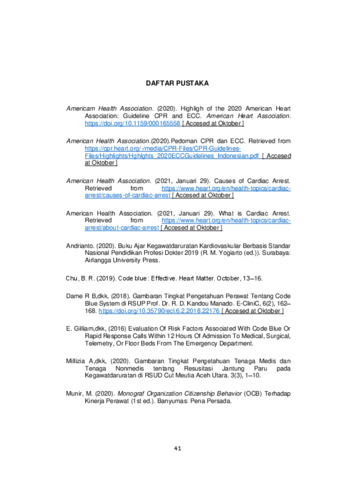 Latar Belakang : Henti jantung (Cardiac Arrest) merupakan penyebab paling