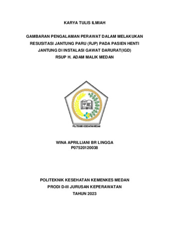 LINGGA, WINA APRILLIANI BR (2023) GAMBARAN PENGALAMAN PERAWAT DALAM MELAKUKAN RESUSITASI JANTUNG PARU (RJP) PADA PASIEN HENTI JANTUNG DI INSTALASI GAWAT DARURAT(IGD) RSUP H. ADAM MALIK MEDAN. Diploma thesis, Poltekkes Kemnkes Medan.