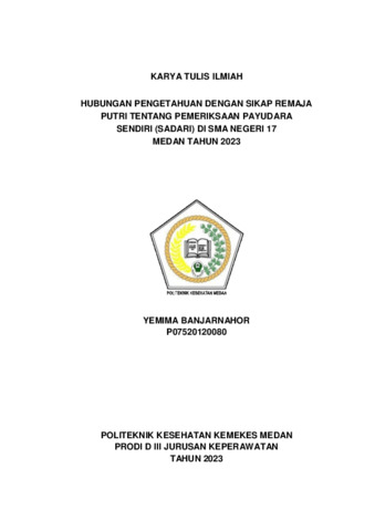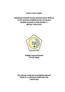 BANJARNAHOR, YEMIMA (2023) HUBUNGAN PENGETAHUAN DENGAN SIKAP REMAJA PUTRI TENTANG PEMERIKSAAN PAYUDARA SENDIRI (SADARI) DI SMA NEGERI 17 MEDAN TAHUN 2023. Diploma thesis, Poltekkes Kemnkes Medan.