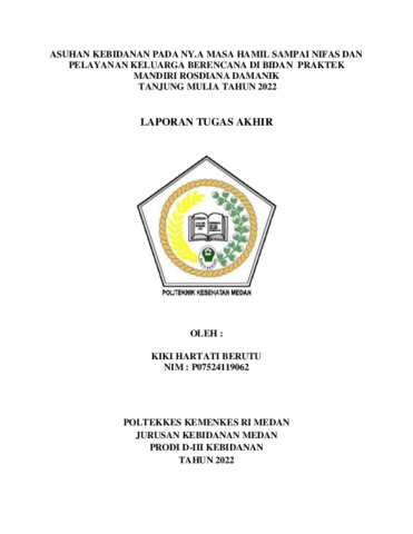 Berutu, Kiki Hartati (2022) Asuhan Kebidanan pada Ny. A Masa Hamil Sampai Nifas dan Pelayanan Keluarga Berencana di Bidan Praktek Mandiri Rosdianan Damanik Tanjung Mulia Tahun 2022. Diploma thesis, Poltekkes Kemenkes Medan.