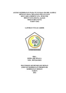 Sinaga, Rizka Br (2022) Asuhan Kebidanan pada Ny. M Masa Hamil Sampai Dengan Masa Nifas dan Pelayanan Keluarga Berencana di Klinik Bidan Nana Dianan Am, Keb Medan Helvetia Tahun 2022. Diploma thesis, Poltekkes Kemenkes Medan.