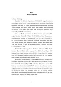 Berdasarkan data dari Profil Kesehatan Indonesia tahun 2019, dalam upaya peningkatan derajat Kesehatan Ibu dan Anak, masih ditemukan tantangan besar yaitu tingginya AKI dan AKB. Berdasarkan data Profil Kementerian Kesehatan Indonesia, AKI di Indonesia sebesar 305 per 100.000 kelahiran hidup dan AKB di Indonesia sebesar 24 per 1000 kelahiran hidup. Faktor penyebab tingginya AKI terbanyak adalah perdarahan (1.280 kasus), hipertensi dalam kehamilan (1.066 kasus), infeksi (207 kasus).