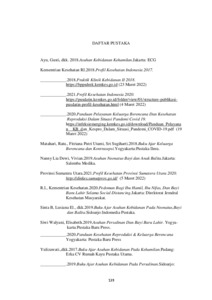 Upaya meningkatkan derajat kesehatan ibu dan bayi merupakan salah satu bentuk investasi di masa depan. Keberhasilan upaya kesehatan ibu dan bayi dapat dilihat dari indikator Angka Kematian Ibu (AKI) dan Angka Kematian Bayi (AKB). Menurut WHO (2019) AKI di dunia yaitu sebanyak 303.000 jiwa, sedangkan pada Tahun 2018 AKB sekitar 18 per 1.000 Kelahiran Hidup. Tingginya AKI dan AKB disebabkan oleh komplikasi pada kehamilan dan persalinan (UNICEF 2019). Upaya penurunan AKI dan AKB telah dilakukan di Indonesia yaitu Program Perencanaan Persalinan dan Pencegahan Komplikasi (P4K) dan konsep Continuity Of Care pada ibu hamil, bersalin, nifas, neonatus dan keluarga berencana.