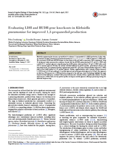 Sembiring, Febri and Natadiputri, Griselda Herman and Suwanto, Antonius (2025) Evaluating LDH and BUDB gene knockouts in Klebsiella pneumoniae for improved 1,3-propanediol production. Journal of Applied Biology & Biotechnology, 13 (2). pp. 156-165. ISSN 2455-7005