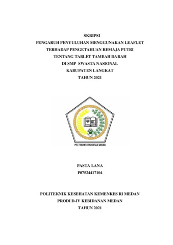 putri tentang TTD yaitu dengan memberikan penyuluhan yaitu menggunakan leaflet. Penelitian ini bertujuan menganalisis pengaruh penyuluhan menggunakan leaflet terhadap pengetahuan remaja putri tentang TTD di SMP Swasta Nasional Kabupaten Langkat Tahun 2021. Jenis penelitian Praeksperimen dengan desain one group pretestpostest dan pengambilan sampel secara total sampling, yaitu remaja putri kelas VII SMP berjumlah 33 orang. Rerata pengetahuan remaja putri sebelum diberikan penyuluhan menggunakan leaflet sebesar 39,09 dengan SD 5,07, dan rerata pengetahuan remaja putri sesudah diberikan penyuluhan menggunakan leaflet sebesar 75,91dengan SD 5,51. Hal ini berarti terjadi peningkatan rerata