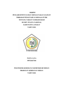 Lana, Pasta (2021) Pengaruh Penyuluhan Menggunakan Leaflet Terhadap Pengetahuan Remaja Putri Tentang Tablet Tambah Darah di SMP Swasta Nasional Kabupaten Langkat Tahun 2021. Diploma thesis, Poltekkes Kemenkes Medan.