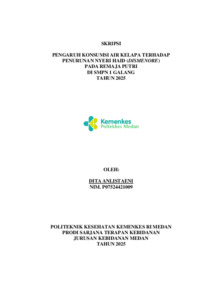 Anlistaeni, Dita (2025) Pengaruh Konsumsi Air Kelapa Terhadap Penurunan Nyeri Haid (Dismenore) Pada Remaja Putri di SMPN 1 Galang Tahun 2025. Diploma thesis, Poltekkes Kemenkes Medan.